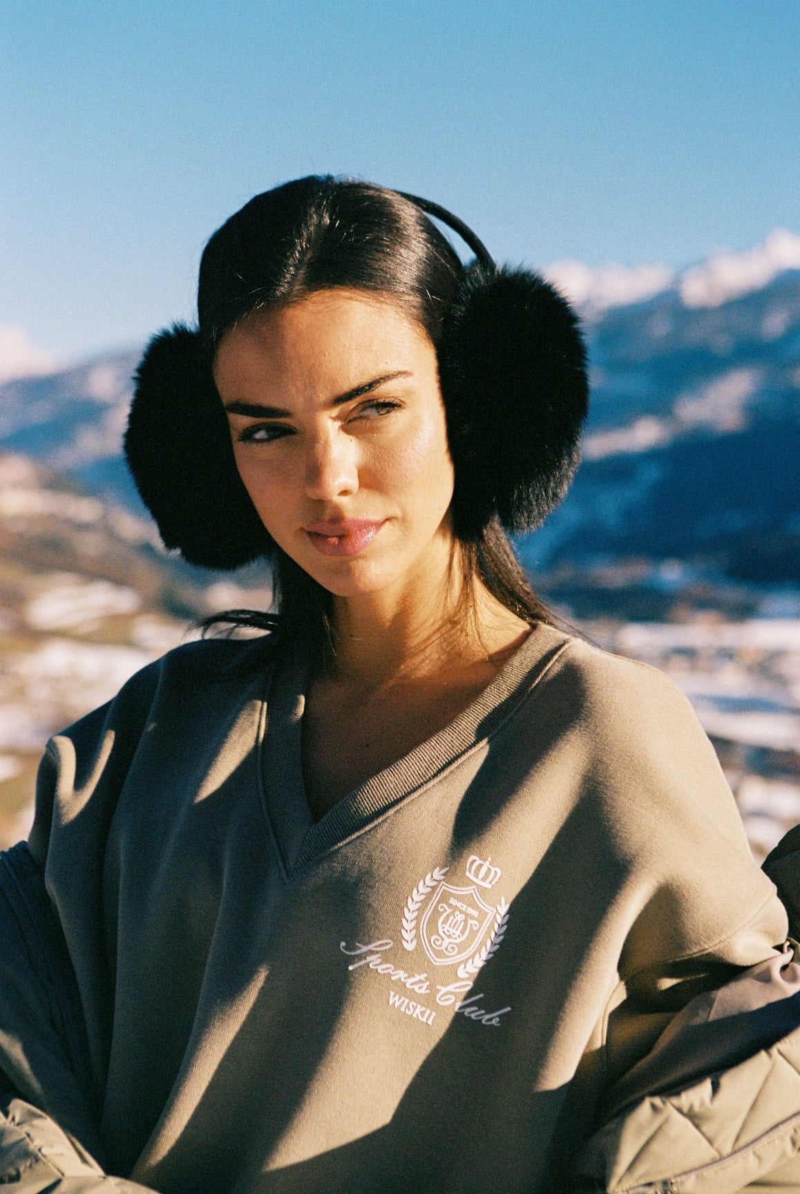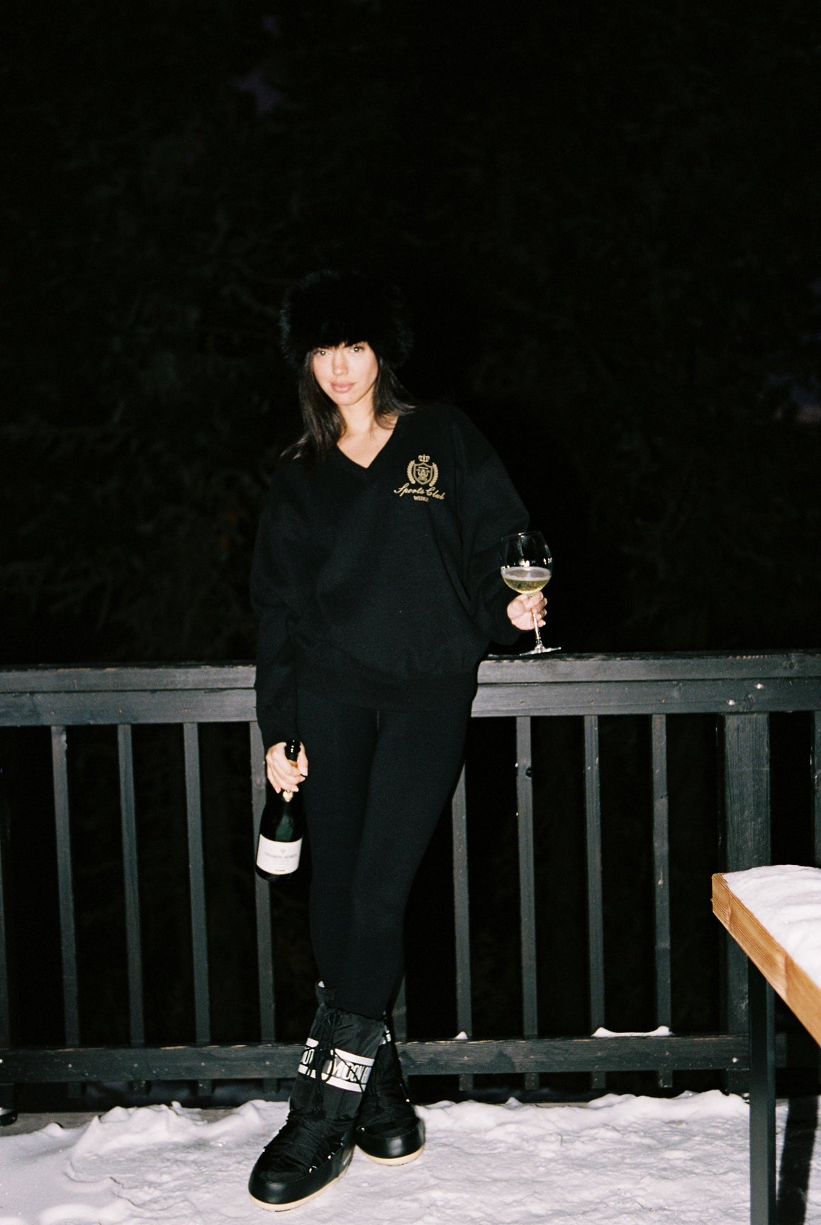 Step into vintage athletic chic. Crafted from a cozy blend of cotton and polyester for ultimate warmth, this V-neck sweatshirt boasts a classic design that flatters your neckline. The retro logo, both front and back, seamlessly blends sporty vibes with a touch of sophistication. Perfect for lounging at home or hitting the streets.