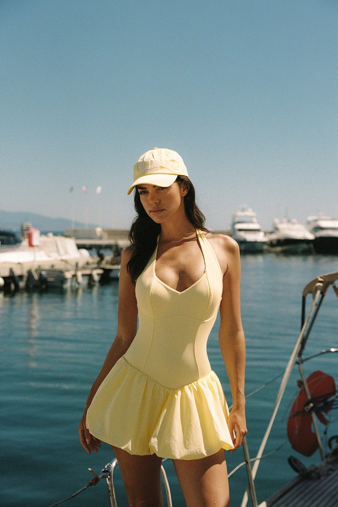 Your new favorite for turning heads. With super stretchy, soft ribbed fabric and hand-sewn floral details inspired by romantic Italian gardens. Designed with a figure-skimming fit, halter neckline, and stunning backless design, its seamed detailing beautifully contours your curves. Reach for this showstopper on your next girls' night out.